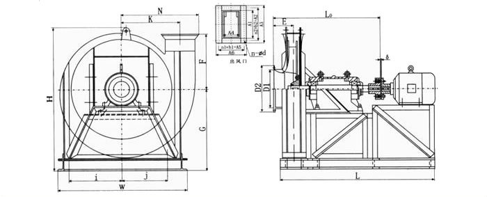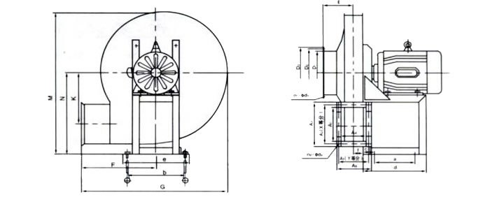 形式: 本通風(fēng)機(jī)為單吸入,有№.4、4.5、5、5.6、6.3、7.1、8.9、10、11.2、12.5、14、16共13號(hào)型號(hào)。