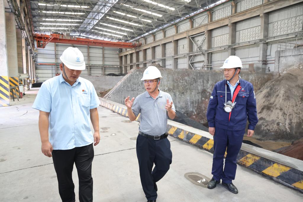 在錫業分公司,劉路坷一行深入熔煉車間、精煉車間、精礦倉等生產現場,詳細了解當前錫冶煉原料結構、生產組織、產品產量等有關情況,對現場管理、檢修進度、設備運行、安全環保等工作進行檢查指導。