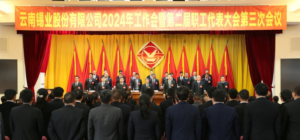 聚力新征程,揚帆啟新航。2月2日,錫業股份召開2024年工作會暨二屆三次職代會,深入貫徹落實云錫控股公司黨委第十一次黨代會、2024年工作會及八屆八次職代會精神,全面總結2023年工作,深入分析形勢任務,系統謀劃2024年重點工作,動員全司上下廣大干部職工統一思想、凝聚共識、明確方向,加快創建世界一流專業領軍示范企業。