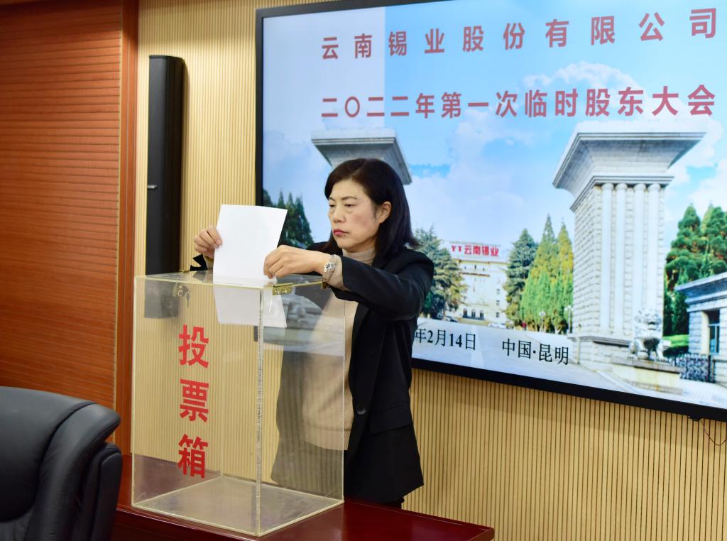 2月14日,錫業股份2022年第一次臨時股東大會在昆明辦公樓8樓會議室召開。錫業股份副董事長、總經理楊奕敏女士主持會議。