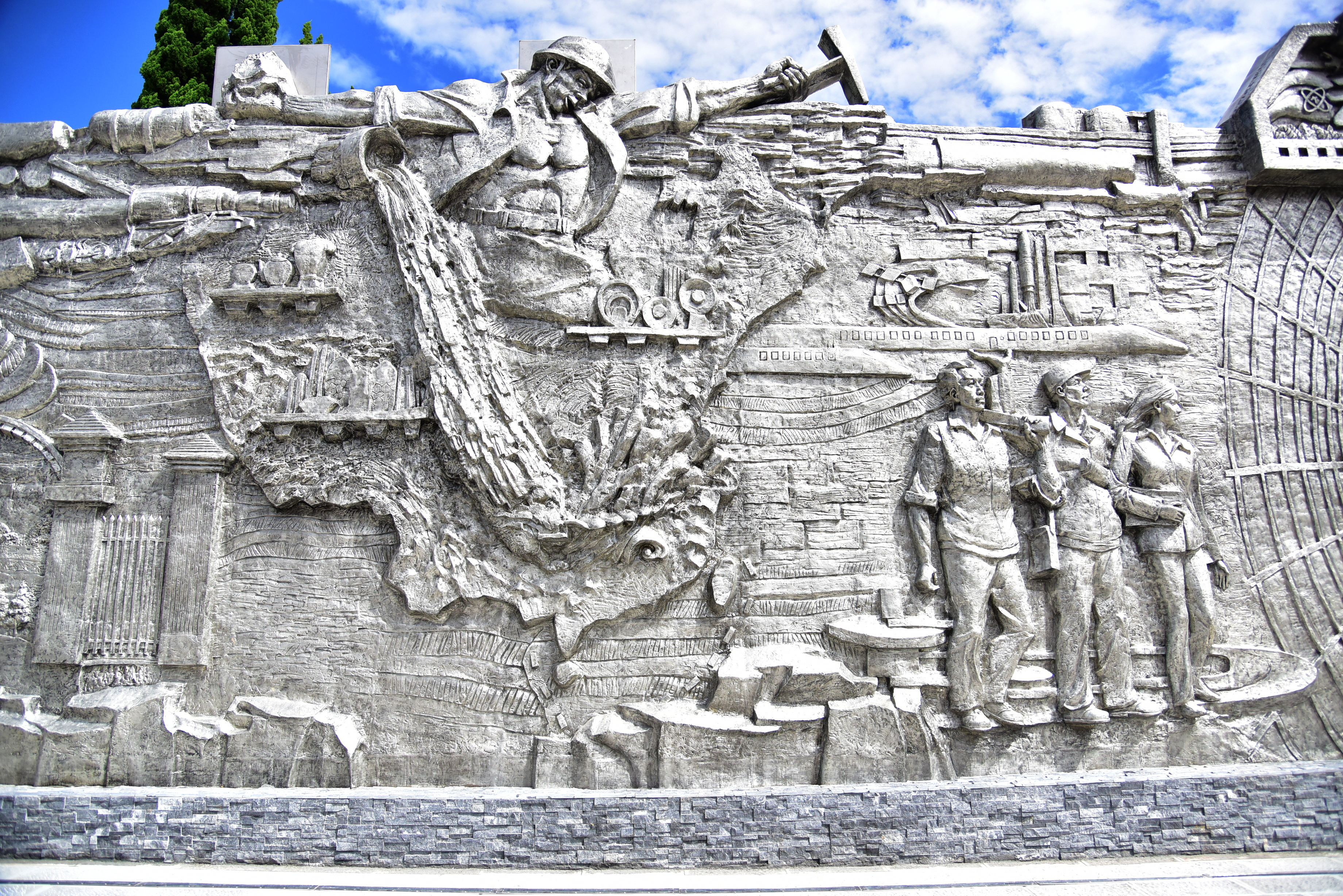 錫礦開采歷史的見證者、舊時人背馬馱的運礦方式、不同字體的“錫”字、捧著個舊金湖的雙手、代表哈尼族的吉祥鳥、古老的個舊選廠鐘樓、滇越鐵路、 “云錫三杰”、以熊秉信和丁文江為代表的地質專家,29號小火車、8號礦洞……在以英文字母“Y”為中軸的左側主題浮雕墻上,每一個元素就是一個故事,它們串連在一起仿佛在訴說著“錫映千秋”的歷史輝煌。