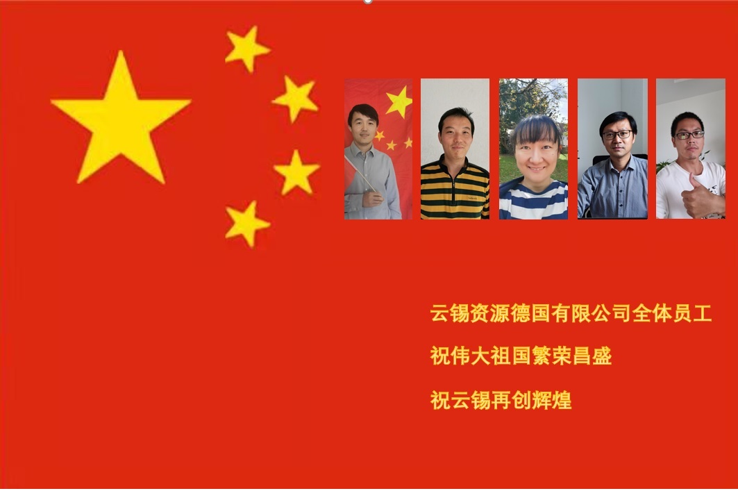 研究院公司黨委:盛世華誕,舉國同慶。祝福祖國國泰民安,繁榮昌盛!祝福云錫生機勃勃,再鑄輝煌!云錫科技,領(lǐng)跑錫業(yè);科技之光,點燃夢想!