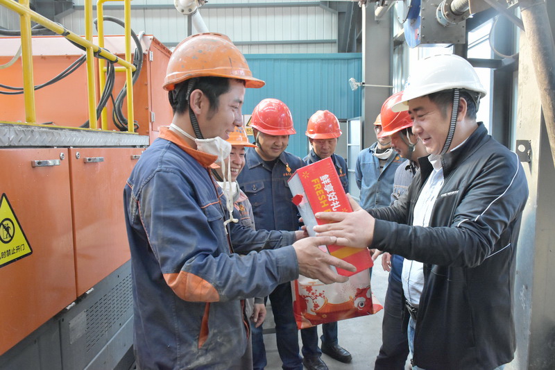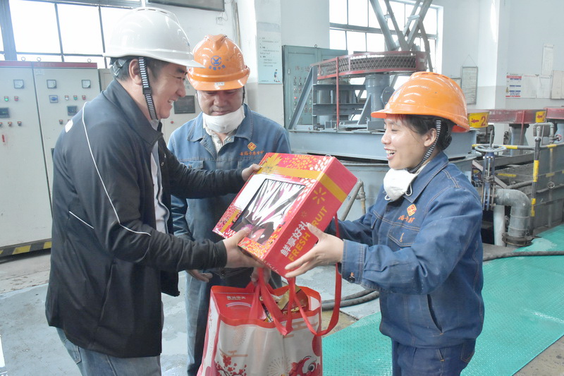 來到精煉車間值班室,程睿涵與一線員工親切握手,送上新年的祝福。他說,冶煉分公司高效有序的生產離不開大家的辛苦付出和努力,在此祝愿大家和家人新春愉快,萬事如意,也希望新的一年繼續努力,履行好崗位職責,為實現錫冶煉順利搬遷做出自己最大的貢獻。