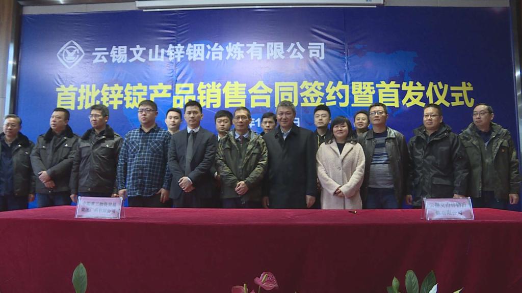 各簽約方在儀式上分別做了表態(tài)發(fā)言,并與文山鋅銦冶煉公司總經(jīng)理朱北平簽訂首批鋅錠銷售合同。隨后,參加簽約儀式的嘉賓和領導對首批產(chǎn)品的首發(fā)進行了剪彩。