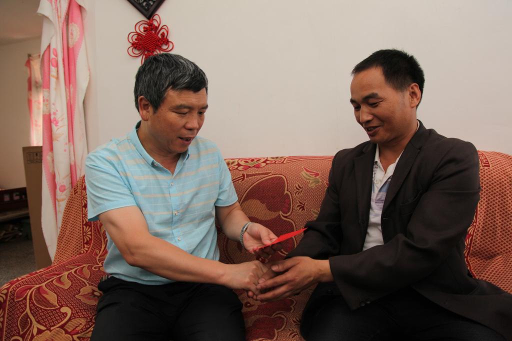 錫業股份黨委委員、副總經理顧鶴林走訪慰問大屯錫礦困難職工沈錫瑾、楊保才、儲啟貴。(嚴 雷/攝)
