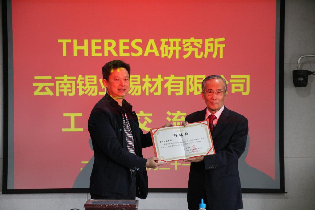 在交流會上,王鵬飛代表錫材公司為長谷川正行頒發技術顧問聘書,白海龍對THERESA研究所給予錫材公司工藝、技術方面的支持和幫助表示感謝,希望雙方在加強友好合作的基礎上,互惠互利,合作共贏,共同發展。