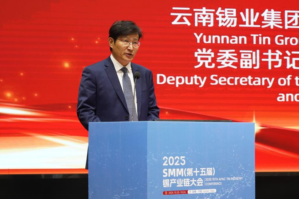 10月22日至24日,2025SMM(第十五屆)錫產(chǎn)業(yè)鏈大會(huì)在個(gè)舊舉行,本次大會(huì)由上海有色網(wǎng)主辦,錫業(yè)股份特邀協(xié)辦。云錫控股公司黨委副書記、副董事長、總經(jīng)理韓守禮出席大會(huì)并致開幕詞。錫業(yè)股份黨委書記、董事長劉路坷參加開幕式并與多家企業(yè)與會(huì)代表交流。