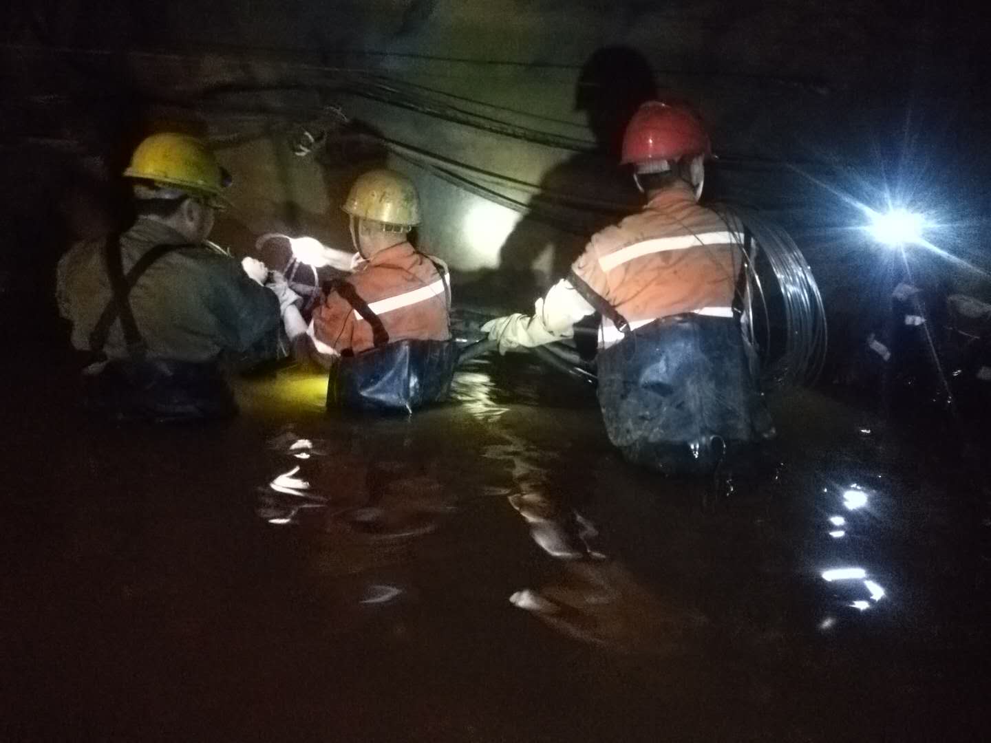 1700米中段,2公里多的上班路變成了一片汪洋,巷道、生產(chǎn)設(shè)備被洪水淹沒。由于水流湍急,水位持續(xù)上漲,救援搶險工作進(jìn)展緩慢。危難關(guān)頭,干部職工脫下身上的衣物,就淌進(jìn)了齊腰深的洪流中,一路摸索前行,設(shè)法向生產(chǎn)設(shè)備靠近,最終將被淹沒的設(shè)備搶救出來。