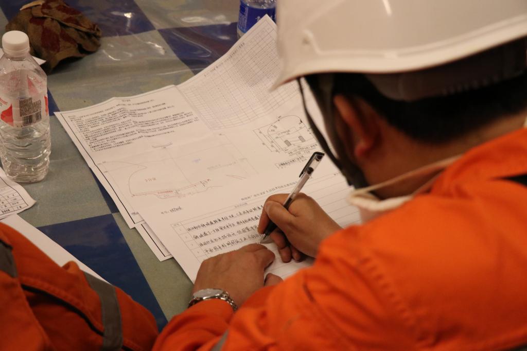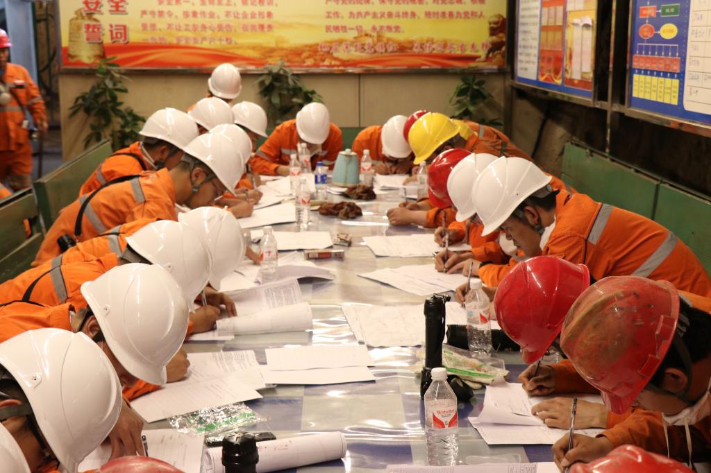 參賽人員經(jīng)過(guò)安全員入坑安全培訓(xùn)后前往本次考試地點(diǎn)塘子凹坑的主力采場(chǎng)3-11-5E,由于高手云集,最后一輪比賽標(biāo)準(zhǔn)更高,要求更嚴(yán)。比賽現(xiàn)場(chǎng),選手們信心滿滿,躍躍欲試,氣氛嚴(yán)肅卻又不失親切。拿到考題后認(rèn)真勾畫,緊抓重點(diǎn)。在迎頭上,選手們沉著迎戰(zhàn),從容不迫,認(rèn)真排查現(xiàn)場(chǎng)與施工單上“異樣”,反復(fù)查看,爭(zhēng)取不漏任何細(xì)節(jié)。